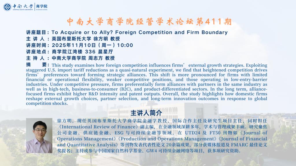 伟德国际1949官网经管学术论坛第411期——英国布里斯托大学 徐方明 教授