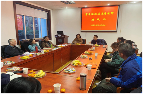 2020年11月30日下午,伟德国际1949官网在管理楼213会议室举办了欢送退休老师座谈会。伟德国际1949官网党委书记任胜钢、院长龚艳萍,党委副书记陈迎明、副院长刘咏梅、关健、危平与2019-2020年期间退休的老同志们欢聚一堂,相互问候,互道珍重。