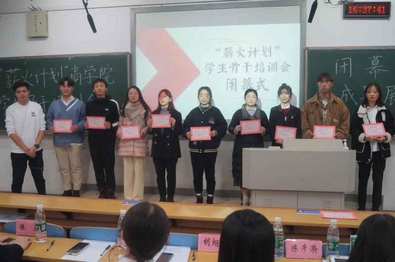 随后,“薪火计划”闭幕式召开。主持人公布了获奖小组与优秀学员名单,并由崔旭、胡翊凡、陈彦漪与杨凯翔颁奖。