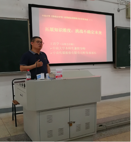 首先,会计与财务管理系李世辉教授对王清学高级会计师进行了介绍,王清学高级会计师给本科生做了题为“拓展知识维度:挑战不确定性”的讲座,从企业用人的视角谈大学生应该具备的知识维度,鼓励大学生在学习书本知识的同时,提高自身分析解决问题的能力,同时提升自己交流、管理的素养。