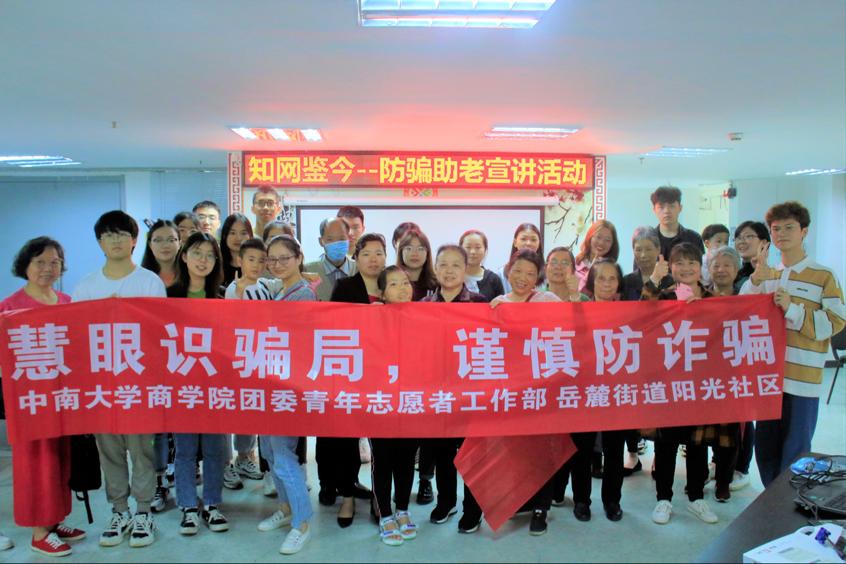 5月30日上午,由伟德国际1949官网青年志愿者工作部与中国建设银行长沙中大支行共同举办的“知网鉴今——防骗助老”系列活动在岳麓街道阳光社区顺利举行。本次活动以提高居民防诈骗意识,保障财产安全为宗旨,邀请到了中大支行副行长钟靖及社区数十位老人参与。