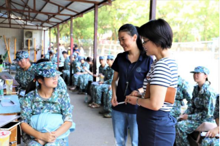 紧接着,龚院长向新生表达了关切与希冀。她客观评价了军训本身的强度,同时提出了“三个希望”,指引学员训出效果、练出力量。一是,希望学员提升身体素质,锻炼坚强体魄;二是,希望通过军训激发深化学员爱国主义热情,树立巩固国家安全意识;三是,希望锤炼学员坚韧不拔、大无畏的优秀品质,在社会主义现代化经济建设的主战场上,奋斗出幸福,并在四年大学里成长为德智体美劳全面发展的社会主义接班人。