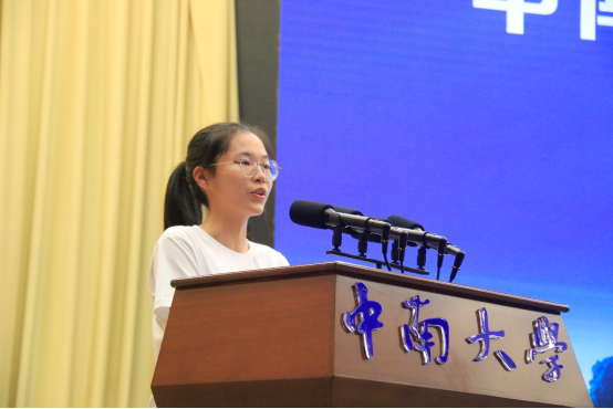 本科生新生代表、经济管理类2110班吴昭如的发言展现了中南新成员的风采。恳切的言辞流露出她对大学生活的憧憬,表达了新生们心怀家国、把个人的理想追求融入到党和国家的事业之中、让青春在奉献中焕发光彩的志向。