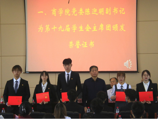 伟德国际1949官网党委副书记陈迎明为第十九届学生会主席团颁发荣誉证书。