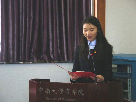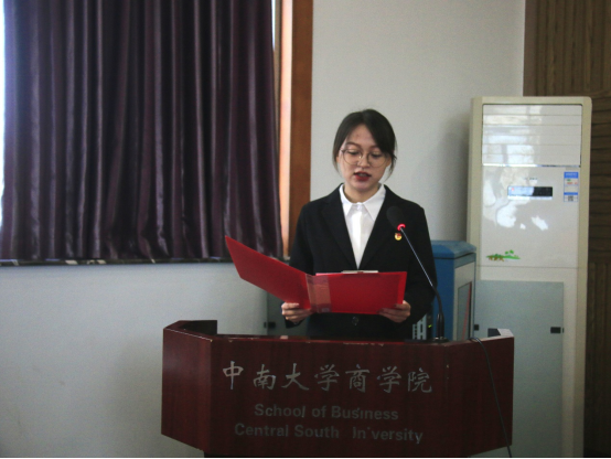 学生代表周轶帆宣读倡议书:坚持知行合一,践行社会主义核心价值观;不忘本源初心,坚定理想信念;锐意开拓进取,更创学院辉煌;无畏困苦艰辛,勇于实践开拓。