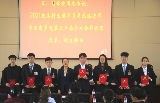 伟德国际1949官网团委书记、2021级本科生辅导员席添添老师宣读伟德国际1949官网新一届团委、学生会部门负责人名单,颁发聘书。