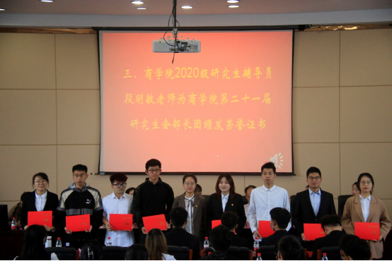 伟德国际1949官网2020级研究生辅导员段明敏老师为伟德国际1949官网第二十一届研究生会部长团颁发荣誉证书。