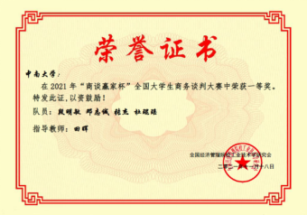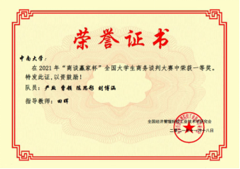11月27日,2021年“商谈赢家杯”全国大学生商务谈判大赛网络闭幕式顺利举行,历时数月的谈判大赛落下帷幕。我们本科生和研究生组建8支队伍(5支中文队、3支英文队),由国际经济与贸易系的田晖教授担任指导老师,共32名学生参加了本次大赛。经过激烈角逐,我们8支代表队取得了3个全国一等奖、3个全国二等奖、2个全国三等奖的优异成绩,其中六位同学获得最佳谈判手称号,指导老师田晖获得优秀指导教师称号!