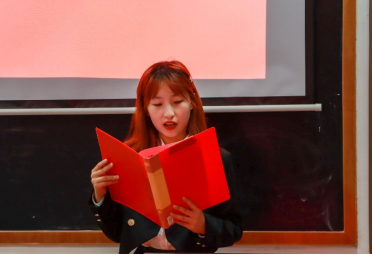第五项,分团委书记席添添老师寄语致谢。她对团委、学生会这一个学期的工作表示感谢,希望各部门能找准定位,努力成长。同时,她指出商院各组织都应携起手来,互相扶持,共同进步。