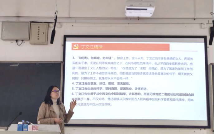 颁奖仪式结束后,支部书记张老师以“登山必到峰顶,移动必须步行”为题讲党课。张老师以岳麓山上丁文江先生之墓为引,讲述了近现代史上为我国地矿研究做出了杰出贡献的地质学家丁文江先生的生平事迹,并从当年视角讲述我国在民国初期所遭遇的地质信息泄露危机,强调国人科研自强的重要性,以此强调丁文江先生生平事必躬亲、不辞艰辛探索中国地质实况的伟大。最后,张老师总结了丁文江精神,提出几点对新时代青年的要求与期望,希望大家学习丁文江先生“登山必到峰顶,移动必须步行”的工作原则,践行“知行合一、经世致用”的校训,力行“向善、求真、唯美、有容”的校风,设立崇高目标、脚踏实地践行,戒骄戒躁,不以物喜不以己悲,成为有大格局的新时代团员、党员。。张老师同时谈了教工支部与学生党团支部加强联系的工作计划,同时强调加强19级与20级卓越班团支部的交流,例如以团日活动为契机,共同开展活动,促进卓越班的共同进步和发展。