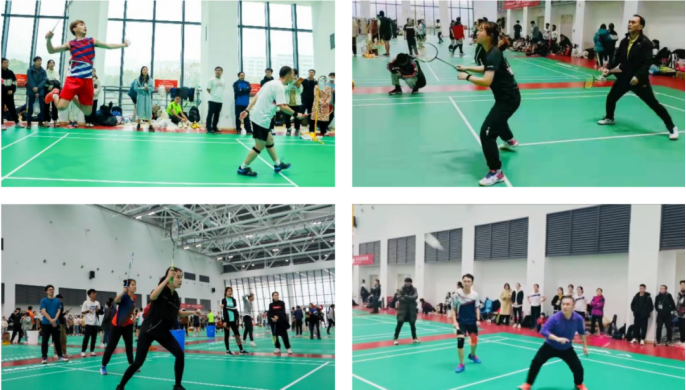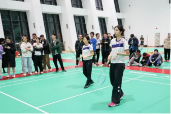 本次比赛从老师同学的需求与兴趣出发,对赛制进行创新,老师与同学参与热情高涨,32支队伍,300余名师生齐聚一堂,场上有拼搏、场边有呐喊、场下有欢笑,现场气氛十分热烈。小组赛采用三局两胜制度,采用十一分制,每队派出男双、女双、混双师生组合一次比赛,八强赛后,比赛仍采用11分制,实行五局三胜制,加快了比赛的对抗节奏,考验了参赛队伍的配合默契度。