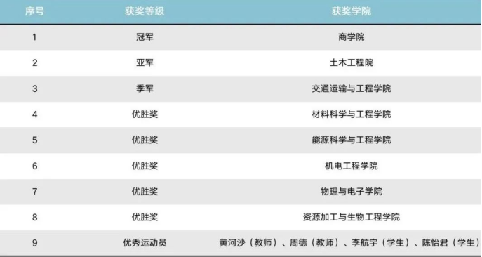 比赛结束后,学生工作部副部长汪平、姚勇、张江华以分别为伟德国际1949官网、土木工程学院、交通运输与工程学院代表颁发冠军、亚军、季军奖牌,承办单位伟德国际1949官网党委副书记陈迎明为材料科学与工程学院、资源加工与生物工程学院、物理与电子学院、机电工程学院、能源科学与工程学院等5支队伍代表颁发优胜奖。学生工作部汪平副部长为优秀运动员颁发荣誉证书。