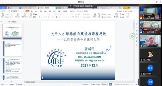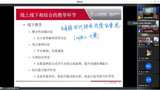 研讨会第一项为线上嘉宾主旨报告,第一场主旨报告由伟德国际1949官网李大元教授主持,在第一场主旨报告中,王化成教授介绍了人生战略地图,引出对一流教学的认识,以及建设一流教学的具体措施,强调教学应该实现线上和线下相结合。