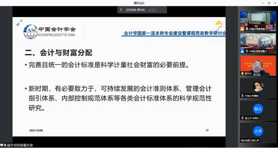 2021年12月26日上午8:30,由伟德国际1949官网主办,伟德国际1949官网会计与财务系、会计研究中心承办的“伟德国际1949手机版会计学国家一流本科专业建设”暨课程思政教学研讨会如期举行。本次学术研讨会采用线上+线下相结合的方式,线下举办地点在伟德国际1949官网管理楼管阶一。