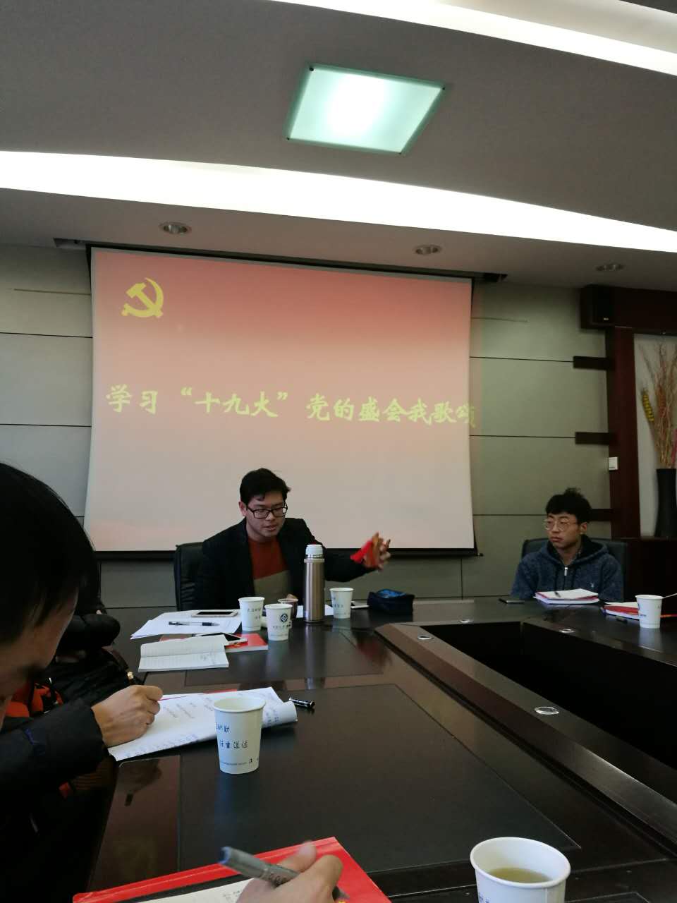 首先,主持人进行开场发言主持人开场发言,简要介绍“十九大”的基本内容。随后游达明书记进行致辞。游书记首先高度肯定了此次学习党的“十九大”精神座谈会的重要意义,要求各位党员认真学习党的“十九大”精神,积极把“十九大”精神融入到自身的培养环节中去,塑造正确的价值观。同时,游书记还勉励各位党员畅所欲言,共话“十九大”精神。
