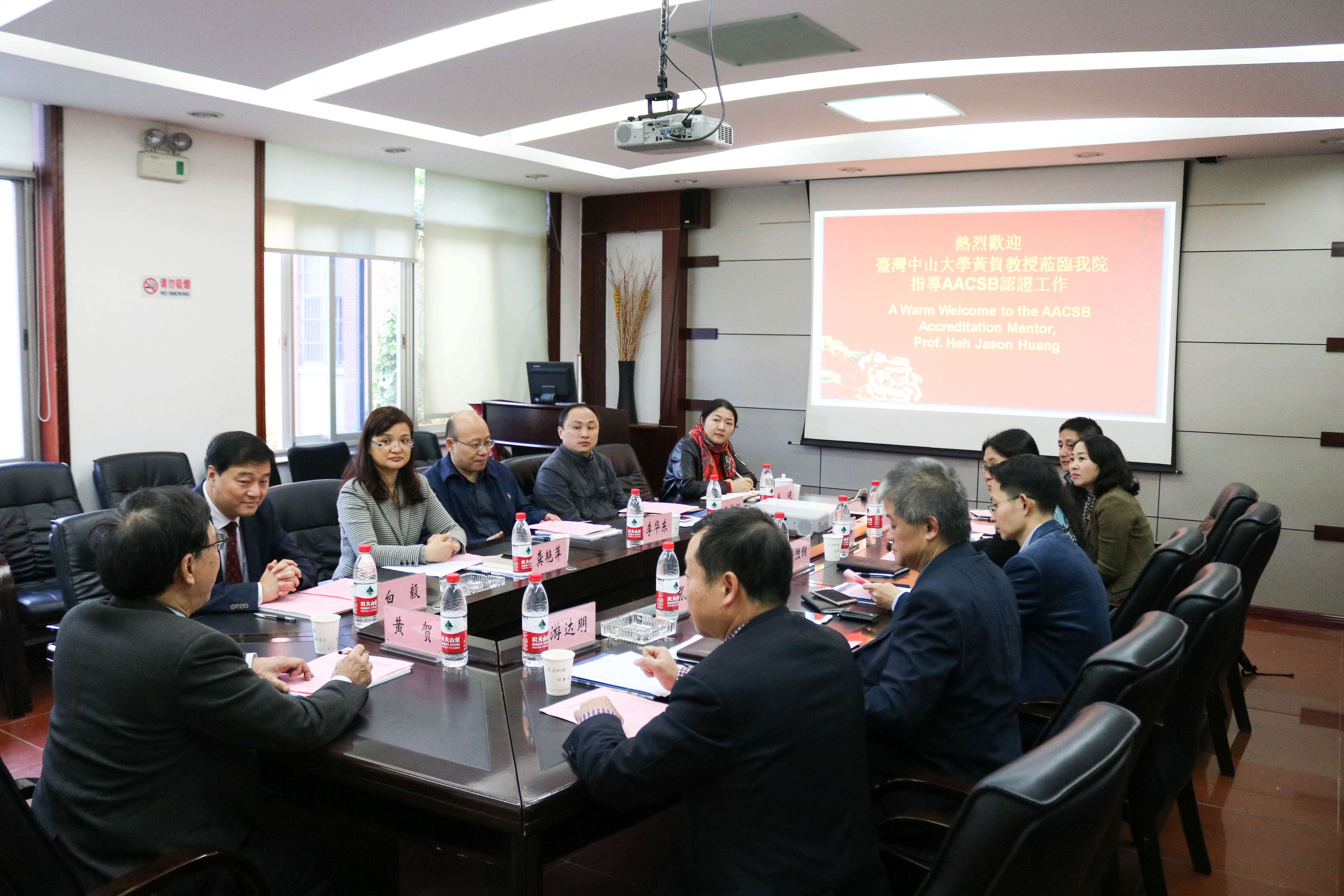 2017年11月15号至11月17号,台湾国立中山大学前院长、荣誉退休教授、AACSB国际认证导师黄贺教授受邀来我们指导AACSB国际认证工作, 对我们AACSB认证过程中存在的问题进行了解答,并就下一步的工作给予了指导。