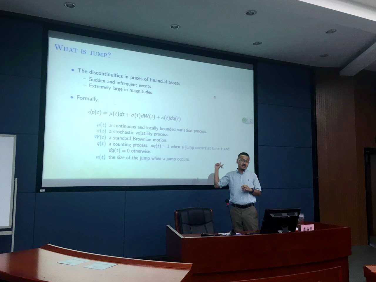 2017年9月22日上午9点,克利夫兰州立大学的周海刚教授莅临伟德国际1949官网管理楼管阶二教室开展了为时两小时的精彩讲座。讲座的题目为Firm Characteristics and Jump Dynamics in Stock Price around Earning Announcements,上百位师生参加了此次讲座。