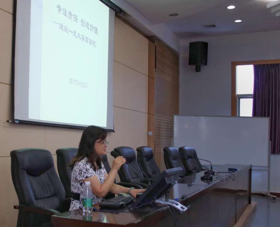 游达明书记随后对全体教师提出了要求。游书记认为,全体教师在传授知识的基础上,要坚持立德树人的根本目标,对于学生的人生观价值观培养不可松懈。张颖副院长就MBA、EMBA学籍和成绩管理方案做简要介绍,刘咏梅副院长就AACSB认证工作做了汇报,李华东副书记就学生思想政治教育和新生管理工作发言。