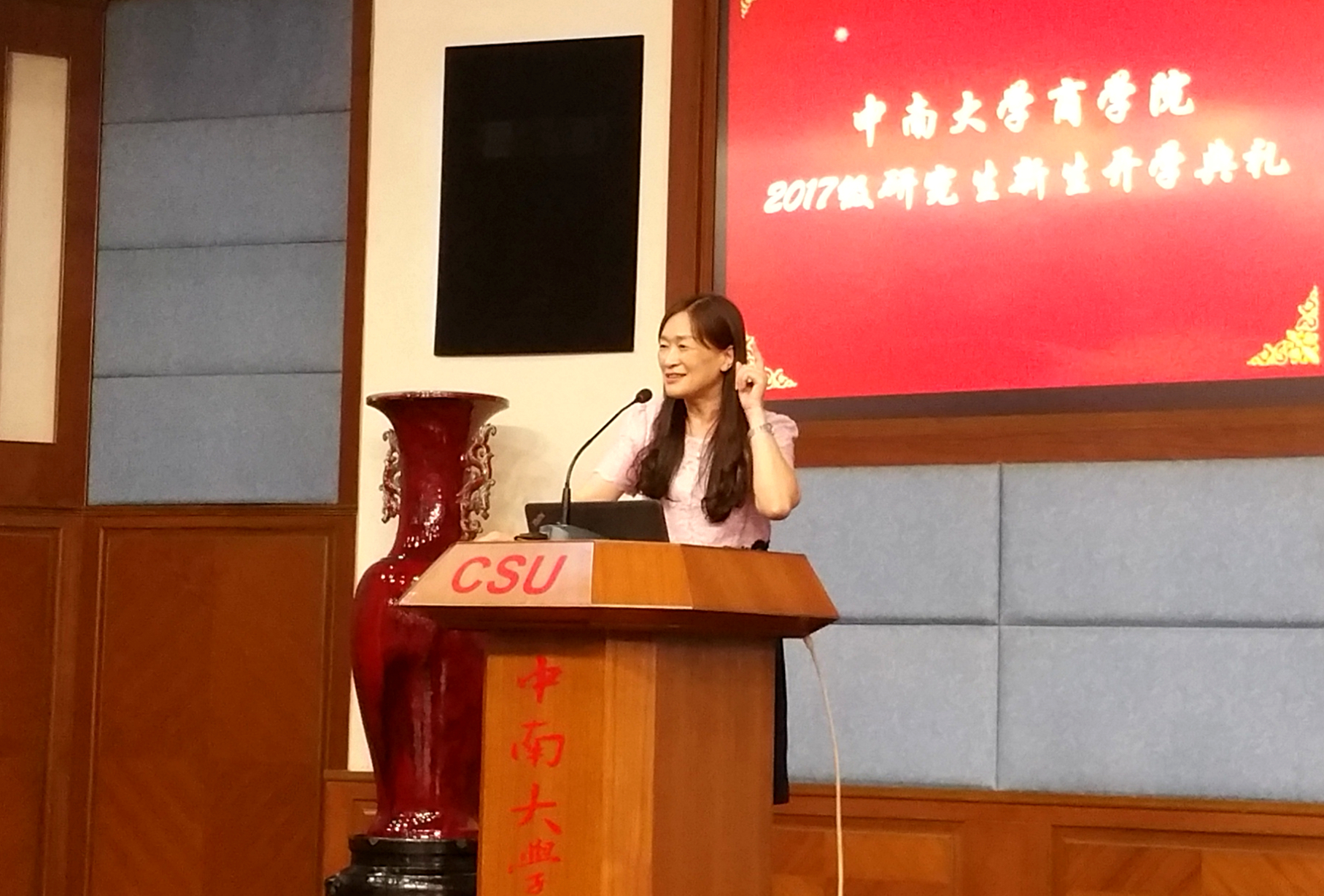 庄严肃穆的国歌声后,2017级硕士研究生代表吴为铮、博士研究生代表毛晓丹分别进行了发言。吴为铮同学表达了对新学习生涯的憧憬,并决心秉承“天道酬勤”的院训刻苦钻研学术,“将性情、品行与人格不断打磨,并积淀深厚的科学文化内涵”。毛晓丹则号召同学们:用饱满的学术热情,炽热的中南情怀,舍我其谁的社会担当,实现自身的人生价值,用坚定的意志承担振兴中华的重任,做一个对国家对社会有用的兴业英才。