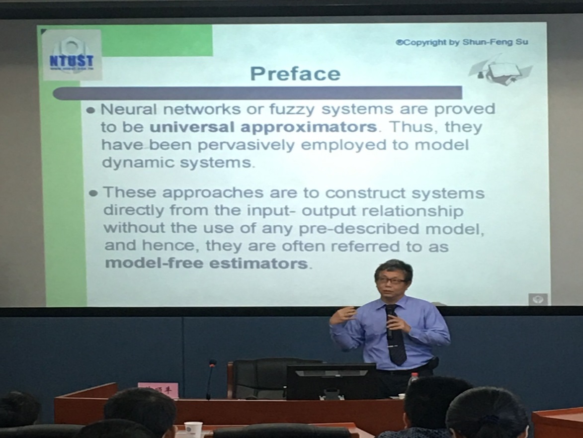 苏教授系统全面地介绍了一种新的模糊系统结构—Decomposed Fuzzy System(DFS),并将其与传统的模糊结构进行了比较分析。这种无模型估计的新型结构具有卓越的学习性能,显示更快的收敛速度以及较小的误差。接下来,苏教授介绍了分解模糊系统的观点及简化的DFS,并通过系统运行模拟使大家有更深刻的理解。讲座最后,苏教授分析对比了大陆和台湾学生当前在学术研究上的区别,鼓励在座的同学刻苦努力,做勤奋严谨的研究者。