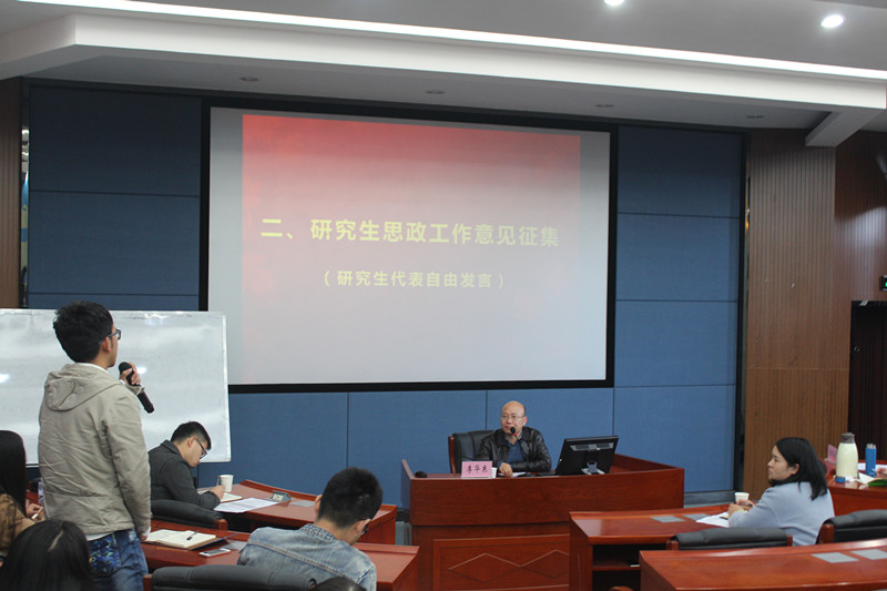 在会议的互动环节,大家踊跃建言献策,指出了我们研究生目前学习、生活、管理等方面存在的问题,还提出了颇具价值的建议。李书记、胡维老师对问题做了详细的解答,而且也表示会考虑采纳学生们的意见,并付诸实践,力争为我们研究生打造更好的学习和生活环境。
