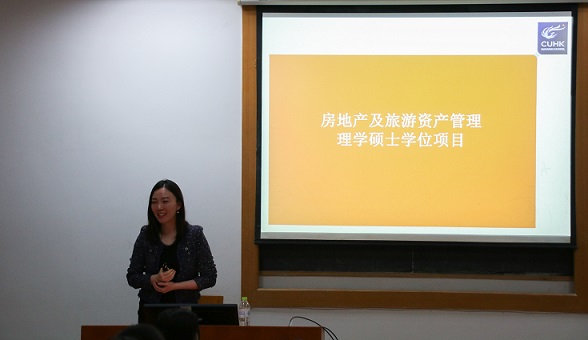 接下来,香港中文大学MSc in Management of Real Estate & Hospitality Assets课程执行主任潘倩瑜老师对香港中文大学及其伟德国际1949官网做了详细介绍,包括校园建设、人才培养及社会服务等多方面内容。随后潘倩瑜老师对本次宣讲的主题——“2017-2018年房地产及旅游资产管理学硕士的攻读”进行了细致的讲解,其内容涵盖了师资力量、课程特色、就业去向、申请条件等同学们最为关注的方面。在最后设置的答疑环节中,潘倩瑜老师耐心地解答了伟德国际1949官网同学提出的问题,将现场的氛围推向了高潮。
