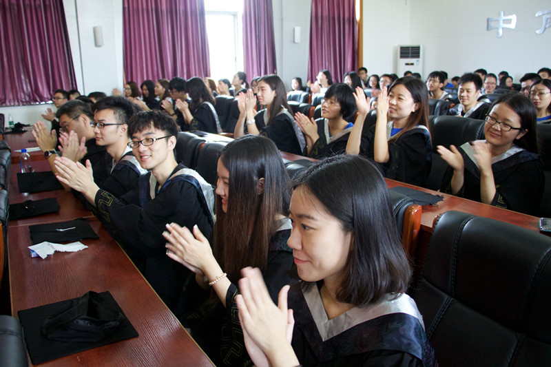 仪式在雄壮的国歌声中拉开序幕。伟德国际1949官网尹恒院长首先代表学院向全体2016届毕业生表示祝贺。他说道,“四年前,你们从五湖四海来到中南,来到伟德国际1949官网;四年里,你们在这里实现了思想和能力上的跨越;现在,你们已经学会了从思考中确立自我,从学习中寻求真理。”除此之外,尹院长还提醒走向更高学习平台的同学要正视挑战,走向社会的同学要警惕诱惑,时时心怀“追求卓越”的精神。