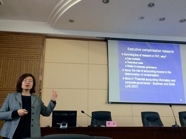 4月8日上午,胡老师介绍的主题是“Corporate governance and accounting research”。讲解了公司治理的发展过程、流行趋势及研究意义,并进一步提出了在公司治理中的会计研究。