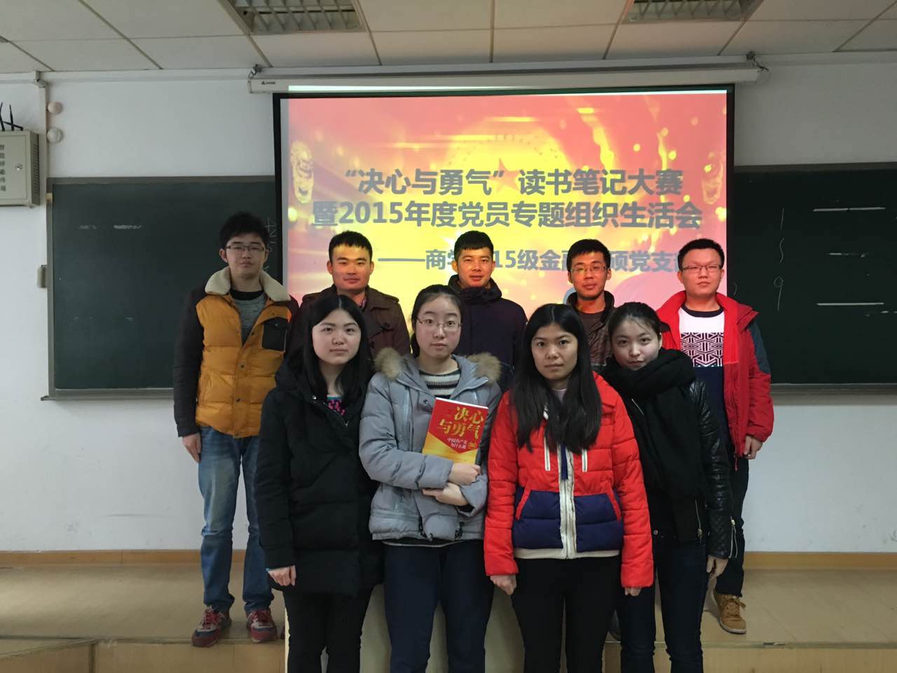 2016年1月10日,伟德国际1949官网15级金融硕士党支部“决心与勇气”读书笔记大赛暨2015年度党员专题组织生活会在科教北楼204教室顺利召开。本次活动一共分为两个部分,第一部分是关于指定书籍《决心与勇气》的读书笔记大赛,第二部分是开展广泛交心谈心,自评互评讲评,畅谈新年愿望,表述决心勇气的专题组织生活会。