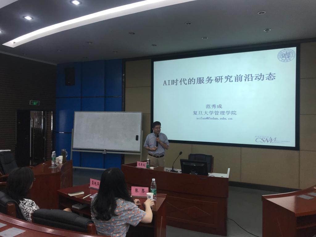 上午10点,范教授在管理楼管阶一开展了主题为“人工智能时代服务营销研究前沿动态”的学术讲座。讲座由张琴副教授主持,我们院长龚艳萍教授、张运生教授及多位教师及研究生参加了本次讲座。范秀成教授结合人工智能的发展,聚焦服务营销主题,首先以海底捞企业、服务机器人等案例阐述AI技术在服务中扮演的角色以及给企业服务带来的革命。范教授指出服务机器人的不断成熟和AI技术的广泛应用,在全球掀起一场服务革命,彻底颠覆了传统的服务交互模式和服务提供方式,促使学术界要用全新的观点和视角开展服务研究。其次,范教授指明了未来服务研究领域的两个重要趋势:技术创新与成果转化,他认为服务研究需要更多地为消费者着想,关注消费者幸福感和福祉,服务研究的范围应该拓展到医疗卫生服务、养老服务、文化创意等新的领域。最后,范教授将变革性的服务营销与消费者幸福感联系起来,探讨了转型升级背景下技术创新对消费者幸福感形成机理与提升策略的研究课题。讲述之后,范教授针对在座师生提出的疑问进行了详细的解答,现场展开了热烈地讨论。最终,本次讲座在一片热烈的掌声中圆满结束,本次讲座为我们师生提供了一次重要的学习交流机会,师生们受益匪浅。