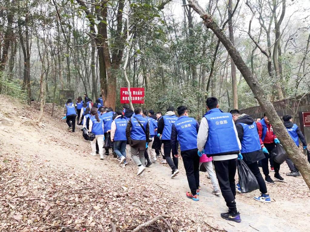通过伟德国际1949手机版MBA联合会公益部前期的周密组织和倾力宣传,志愿者们情绪高涨、积极参与。伟德国际1949官网对此次活动给予了大力支持,活动当日,MBA中心张龙伟老师与志愿者们一同从岳麓山脚下出发,践行公益。他们沿着云麓山庄小路上山,向麓山之巅有序迈进。