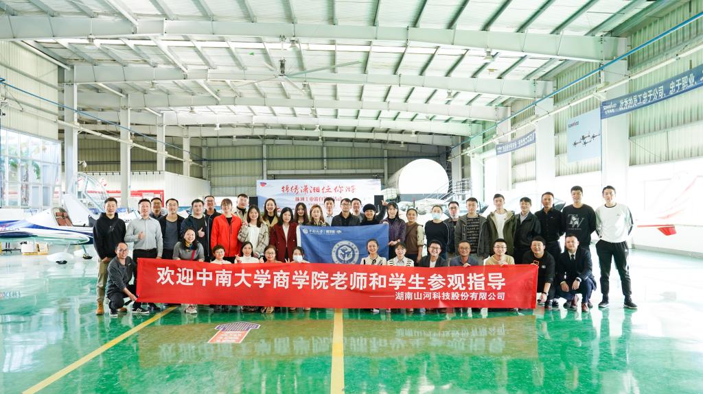 下午两点,同学们来到湖南山河科技股份有限公司,一下车,就是让大家兴奋的轻型运动飞机。在同学艾勃帆带领和介绍下,同学们参观展厅、走进了飞机制造工厂,深入了解飞机制造运营全过程。