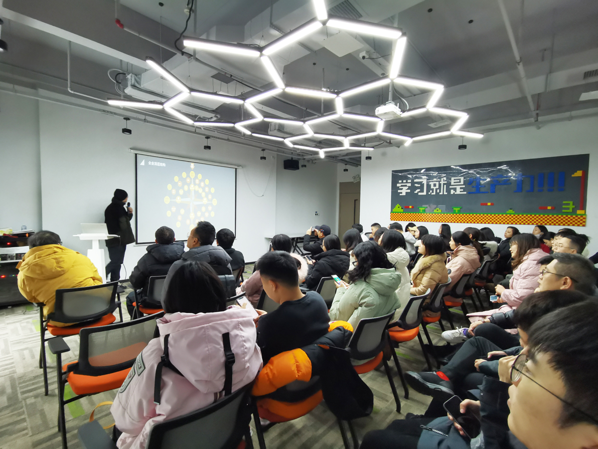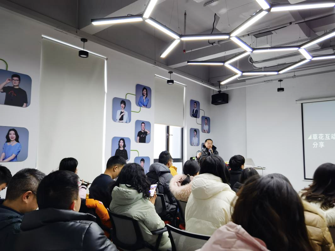 走进草花互动,同学们的第一感受是办公室的氛围非常适合年轻人,处处体现了对人的尊重,草花互动设计了一种机制,让员工有参与感,并自愿参与。随后,草花互动负责人从目标管理、人才管理、文化传递三个维度向学员详细介绍了公司的组织管理,让学员了解到公司是如何经营团队的。