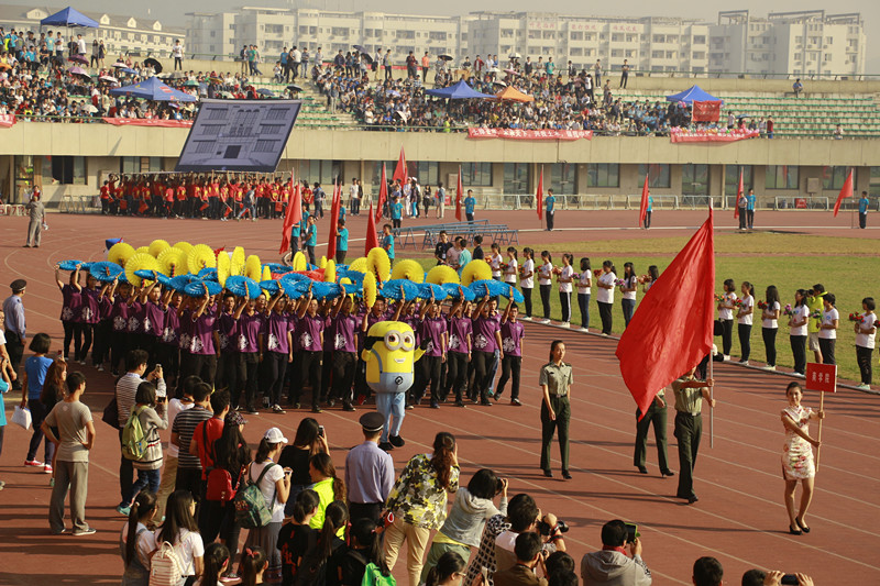 本次校运会于10月16日正式开幕。开幕式上,各二级学院的入场方阵引人注目。其中,伟德国际1949官网在整齐的队列前后设置了活泼的卡通人物,展现了商院人严肃而不失活力,活泼而不失风度的精神面貌。以“文化·青春·舞动·梦想”为主题的开幕式汇演精彩纷呈。15级新生用他们整齐划一的队列和一丝不苟的精神,为反法西斯战争胜利70周年喝彩;健美操表演舞动青春,活力四射。场边锣鼓齐鸣,呐喊不断,观众热情高涨,赛场气氛活跃,健儿蓄势待发。