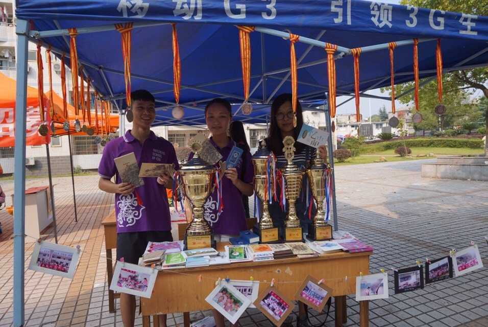 18日下午活动接近尾声,第四组团队的队长也拿出了十足的力气,校运会伟德国际1949官网蝉联14次冠军,周日下午为了吸引同学们的眼球,特别设立了奖杯专场,将本届校运会所得的奖杯和奖牌都亮了出来。有不少同学都被金灿灿的奖杯吸引过来,支部成员也热情地帮助这些同学和奖杯合影。在义卖气氛的渲染下,被吸引的同学们也纷纷拿出自己的零花钱来购买明信片。