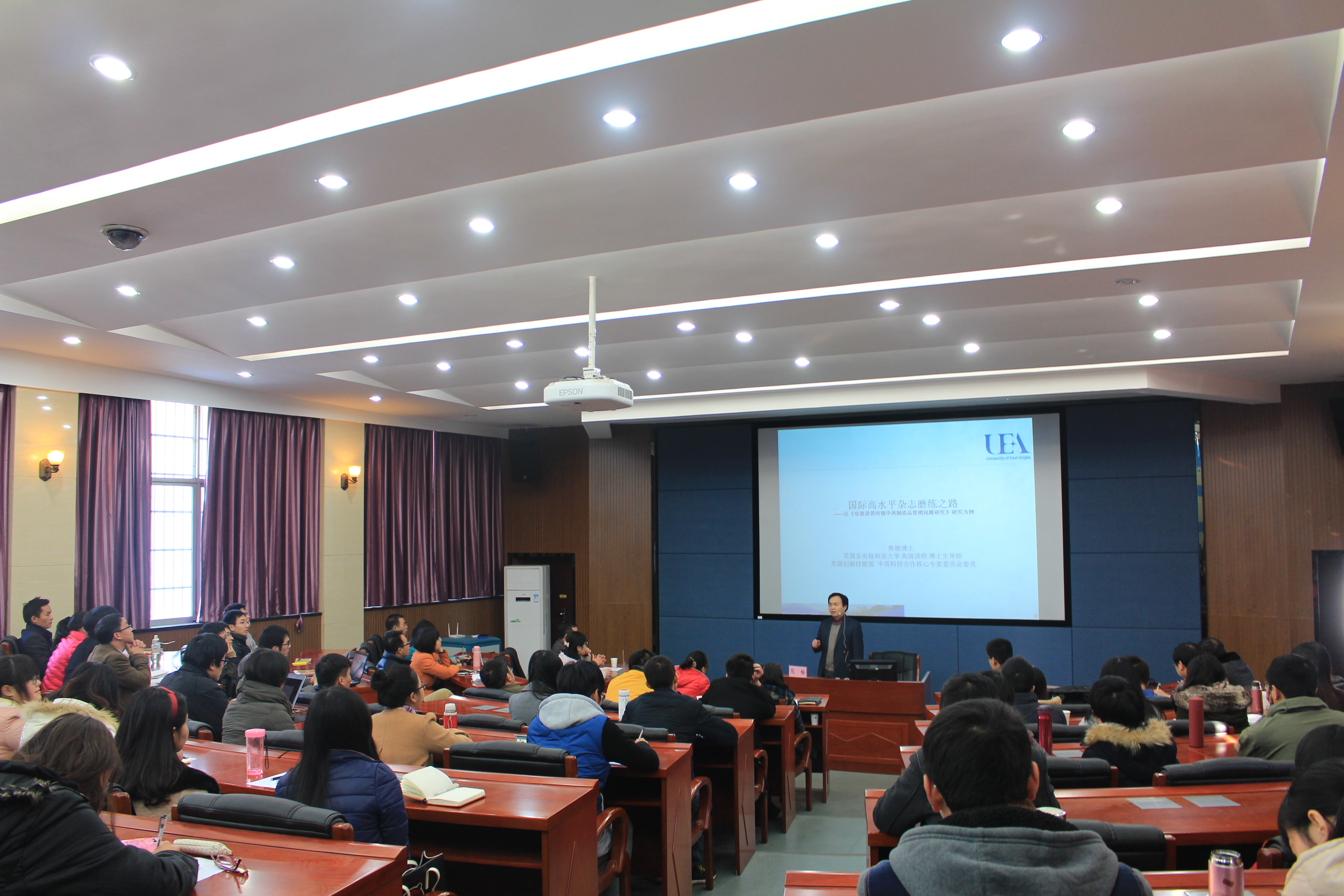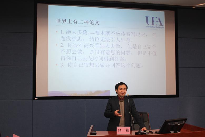 2014年12月24日下午两点半,英国东安吉利亚大学终身教职高级讲师熊榆博士莅临伟德国际1949官网,于管理楼二楼阶梯教室进行了一场精彩的讲座。讲座由伟德国际1949官网党委书记游达明教授主持,伟德国际1949官网近百名师生到场聆听。