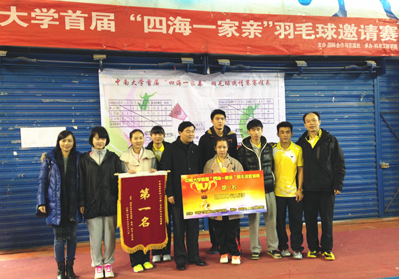 2014年12月28日,南校区羽毛球馆内热闹非凡,由伟德国际1949手机版国际合作与交流处主办,机电工程学院承办的伟德国际1949手机版“四海一家亲”首届羽毛球邀请赛正在紧张而有序的进行。此次比赛旨在丰富校园文化,增强与港澳台及外籍留学生之间的交流,全校共有15支队伍获邀参赛。我们代表队经过一天的激烈比拼,荣获冠军。