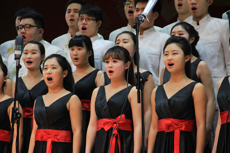 比赛伊始,由伟德国际1949手机版附属实验小学童声合唱团演唱《我们是共产主义接班人》,比赛在嘹亮清澈的童声正式拉开帷幕。主持人介绍了比赛的规则和本次比赛的目的后,第一个上场的伟德国际1949官网合唱队演唱的《北京颂歌》抒情而奔放,商院学子们将爱国主义的精神风貌通过气势雄伟的歌声表现的淋漓尽致。接着各合唱队伍依次上场,同学们饱满的热情、嘹亮的歌声、扎实的演唱功底打动人心,赢得了台下阵阵掌声。比赛最后以文学院合唱队的一首气势恢宏的曲目《走向复兴》完美落幕,深情地演唱表达了当代大学生对祖国的热爱之情以及勿忘国耻、渴望复兴的强烈愿望。