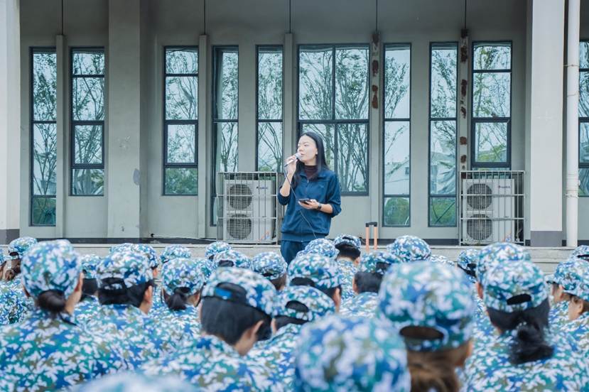 在整齐的队列前,王院长首先发表讲话。他表示,军训不仅是为了强健体魄,更是为了磨砺意志。他以踢正步锻炼协调能力、叠被子培养执行力为例,强调了军训对自我提升的重要性,并希望同学们能将在21天军训中养成的良好习惯延续到大学四年,成长为优秀的人才。