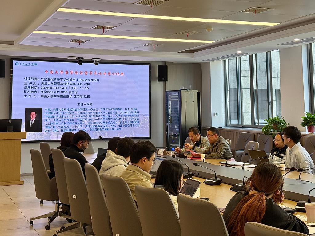 2025年10月24日,伟德国际1949官网经管学术论坛第408期在江湾楼晨星厅顺利举行。天津大学管理与经济学部李磊教授应邀作题为“气候变化背景下韧性城市建设与适应性治理”的专题讲座。讲座由伟德国际1949官网副院长汪阳洁教授主持,程继鑫老师与相关学生积极参与。