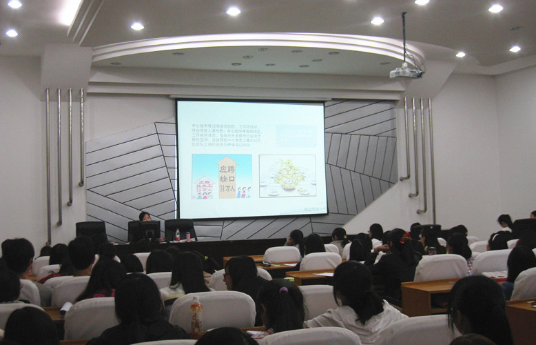 随后,学院就业专干黄河沙老师为大家带来了精彩而详实的就业指导讲座。黄老师首先向同学们简述了当前就业形势的严峻性和求职过程中同学们普遍存在的问题,继而围绕毕业生树立正确就业心态、制作优秀简历、面试技巧以及预防面试陷阱、三方协议填写等方面作了详细分析。当提到制作优秀简历时,黄老师从为什么要做好简历和怎样做好简历两方面,有针对性地提出了简历的定位是为了能够获得面试机会,在ppt页面上向同学们展示了制作优秀简历的要点和关键技巧。对于面试环节,她建议同学们要积极准备、勤于思考,结合客观实际有针对性地回答考官们的问题。另外,黄河沙老师针对社会上存在的利用大学生缺乏经验、求职心切的状况布置面试陷阱的情况,对如何预防求职骗局进行了讲解。最后,黄老师向大家着重强调了三方协议填写、报到证派遣等注意事项,提醒同学们要妥善保管好协议书,学会策略性地填写补充协议,维护自身权益。
