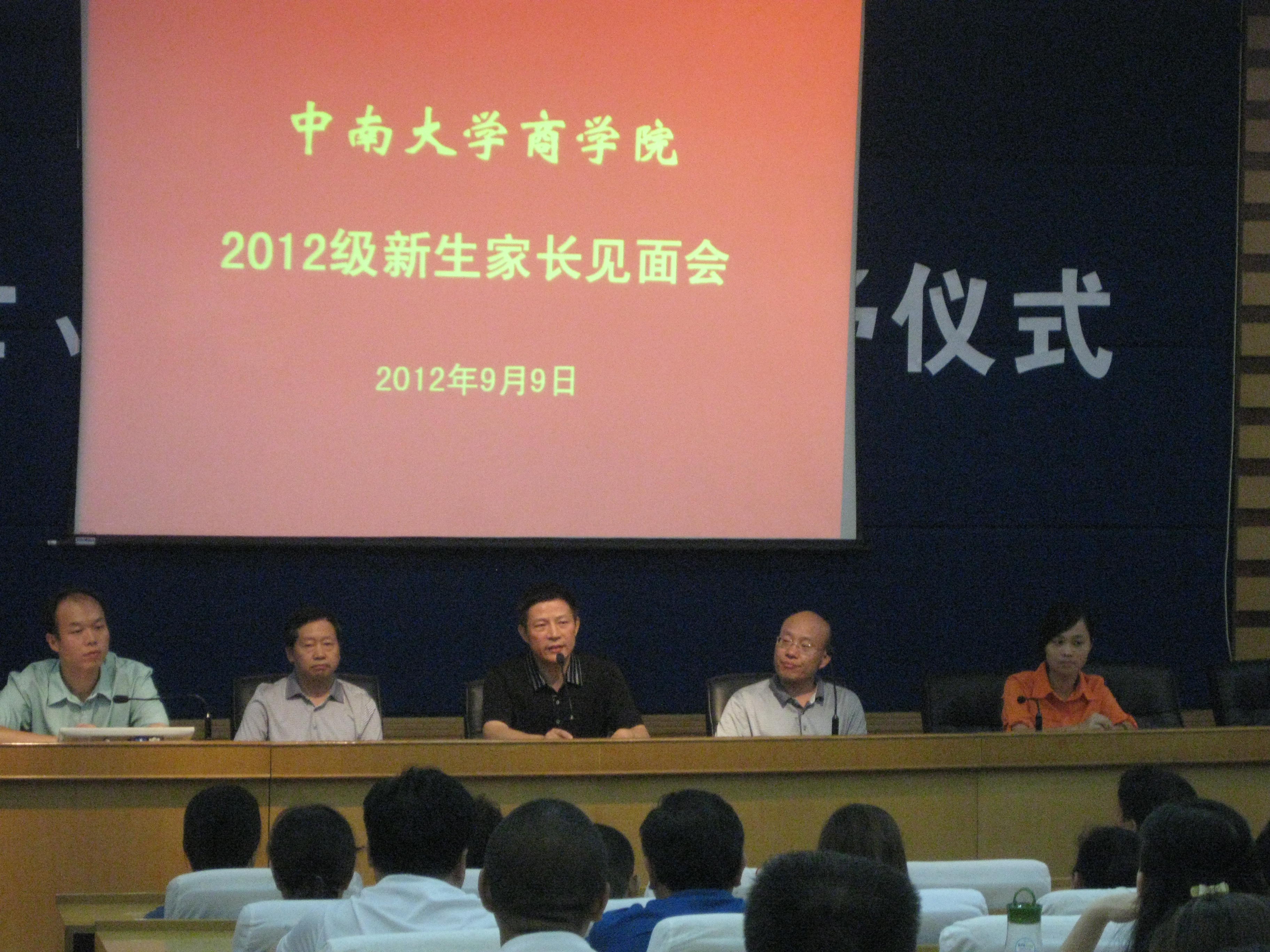 为了让远道而来的家长加深对学院的了解,促进家长对学院学生工作的配合与支持,9月9日下午3点,我们召开了2012级新生家长见面会。学院党委书记胡振华教授,常务副院长游达明教授,党委副书记李华东老师,学工办主任李苑老师以及2012级辅导员邓抗老师和学工办黄河沙老师出席了本次见面会。