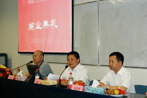 首先,三一重工的总裁助理刘爱荣先生讲话。刘爱荣总经理对学员积极投入,认真学习,顺利结业表示了热烈祝贺。刘爱荣指出,本次培训内容丰富,形式多样,学员收获很大,取得了良好的培训效果,圆满地达到了预期培训的目的。刘爱荣先生还祝愿大家能在今后的工作中取得更大、更辉煌的成就。