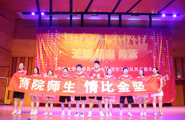 本次比赛在学院领导的支持和关心下,节目构思上新颖独特,将传统广播体操和现代流行元素巧妙结合,太极、poping舞蹈等都融合在节目中;演员排练刻苦,准备工作充分,学生与辅导员一道在舞台上展现了伟德国际1949官网优良的精神风貌。“商院师生,情比金坚”的横幅恰当体现了伟德国际1949官网师生的深厚感情,也给在场的领导和观众留下了深刻印象。