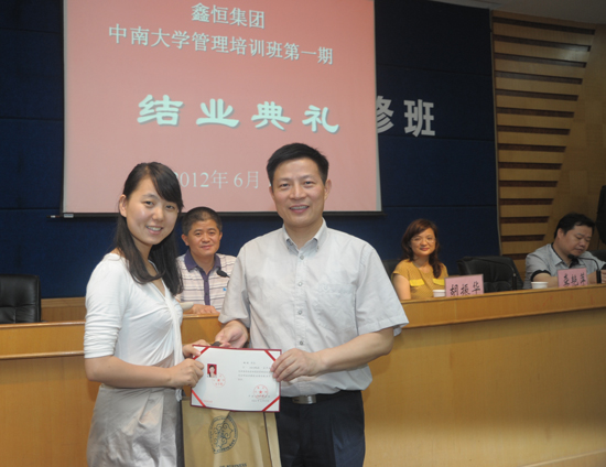 6月14日下午,鑫恒集团管理人员培训班第一期结业仪式在伟德国际1949官网管阶一隆重举行。伟德国际1949官网党委书记胡振华教授,副院长张颖教授,副院长龚艳萍教授,院长助理罗剑宏教授出席了结业典礼。结业典礼由张颖副院长主持。