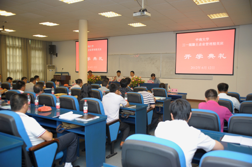 6月12日,三一混凝土企业管理精英培训班第二期开学典礼在铁道学院商学楼308隆重举行,伟德国际1949官网党委书记胡振华教授,常务副院长游达明教授、副院长张颖教授以及三一重工总裁助理、三一泵送营销服务公司总经理刘爱荣先生等三一公司领导出席了开学典礼。开学典礼由张颖副院长主持。