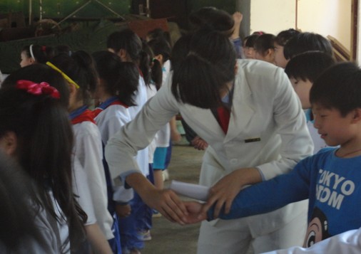 国旗班训练在雷锋小学的礼堂举行。国旗班成员们分工明确,态度亲切,依次对同学们进行了军姿、摆臂、停止间转法等基本动作的指导。同时,每一位国旗班成员还深入到同学们当中,耐心地对小朋友们的姿势进行了示范和指导,严格中流露着和善,劝导中体现着关爱。