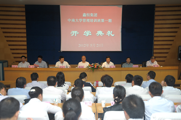 5月21日上午9点,鑫恒集团2012年中层管理培训班第一期开学典礼在伟德国际1949官网管阶一隆重举行。伟德国际1949手机版常务副校长、伟德国际1949官网院长黄健柏教授,伟德国际1949手机版校董事会副董事长、鑫恒集团董事长杨毅先生,伟德国际1949官网党委书记胡振华教授,常务副院长游达明教授,副院长张颖教授,校基金会秘书长张忠生教授,鑫恒集团人力资源部总经理邹迪先生以及鑫恒集团全体培训学员出席了开学典礼。开学典礼由伟德国际1949官网党委书记胡振华教授主持。