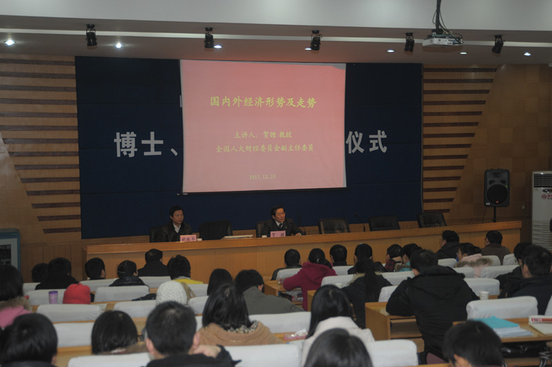 12月23日上午,管理楼108教室座无虚席,全国人大财经委员会副主任委员贺铿教授应邀来我们经管大讲堂,为伟德国际1949官网广大师生献上了题为《国内外经济形势及走势》的精彩学术讲座,讲座由我们党委书记胡振华教授主持。