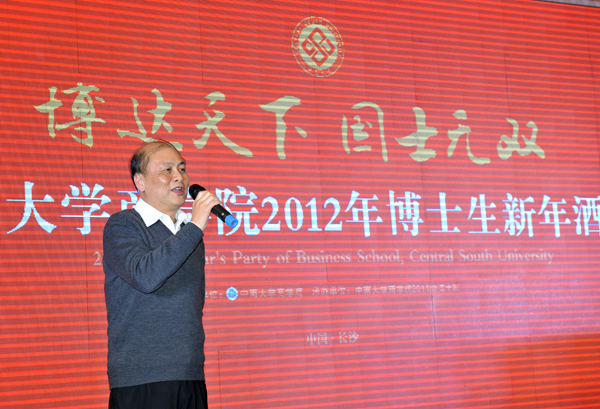 2011级博士生班班长、大汉控股集团有限公司董事长傅胜龙先生为新年酒会祝酒